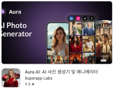 이러한 흐름 속에서 등장한 앱 가운데 하나가 바로 Aura AI: AI 사진 생성기 및 애니메이터입니다. 이 앱은 인공지능 기술을 활용하여 사용자의 사진을 기반으로 다양한 스타일의 이미지를 생성하거나 애니메이션 효과를 추가하는 기능을 제공하는 AI 콘텐츠 제작 앱입니다.