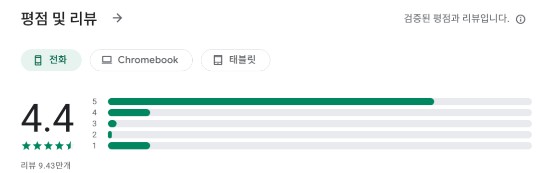 - 설치 시 Android 7.1 이상이 요구되며 약 44.6MB의 저장 공간이 필요합니다.