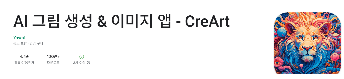 - Google Play 스토어에서 “AI 그림 생성 & 이미지 앱 - CreArt”를 검색해 설치할 수 있습니다.